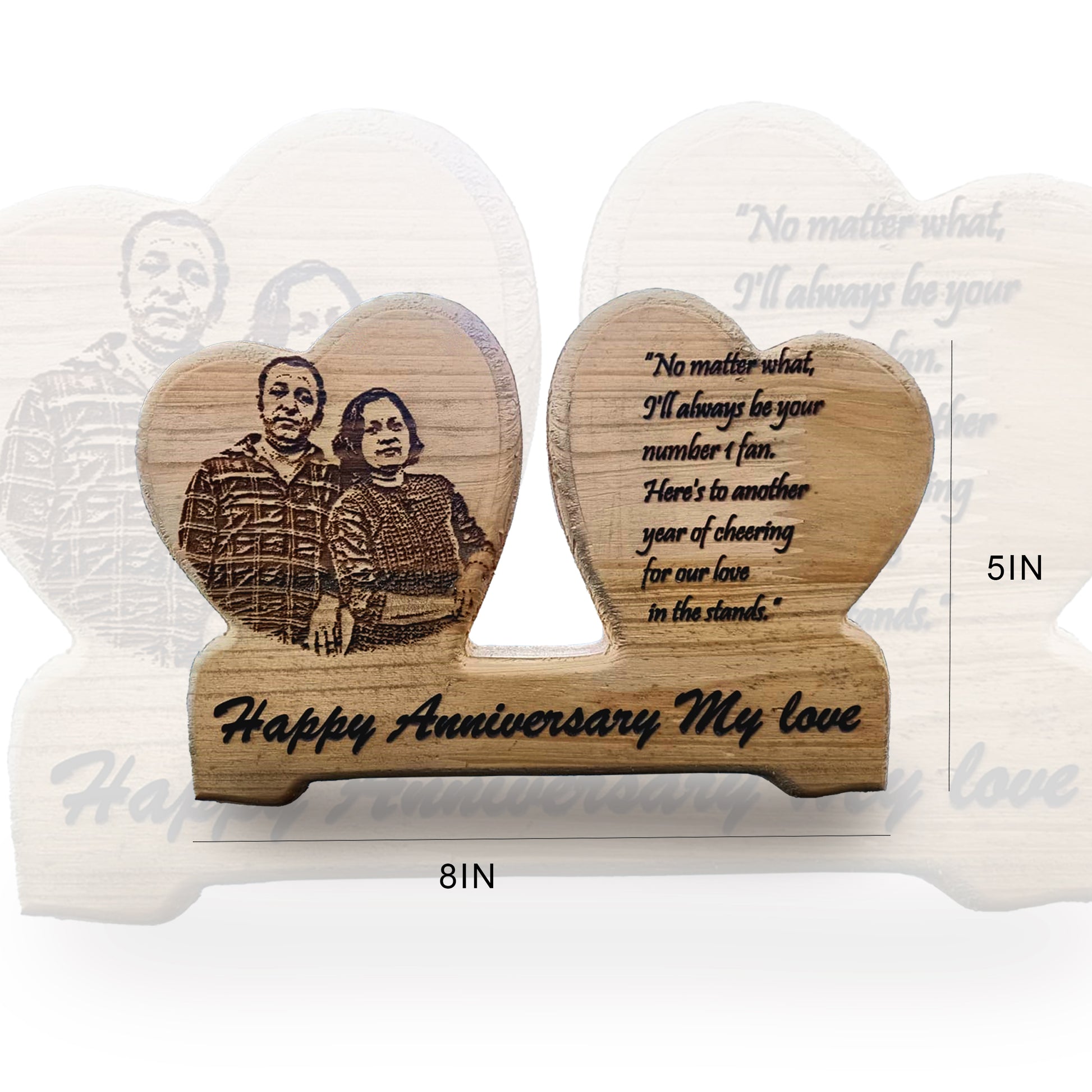 Celebrate love and togetherness with this beautifully crafted dual heart–shaped wooden plaque. One heart features a laser-engraved photo, capturing your cherished memory in stunning detail, while the other showcases your personalized message or names. The base includes custom wishes that change with the occasion — perfect for birthdays, anniversaries, weddings, or Valentine’s Day. A timeless keepsake that speaks straight from the heart. 💕