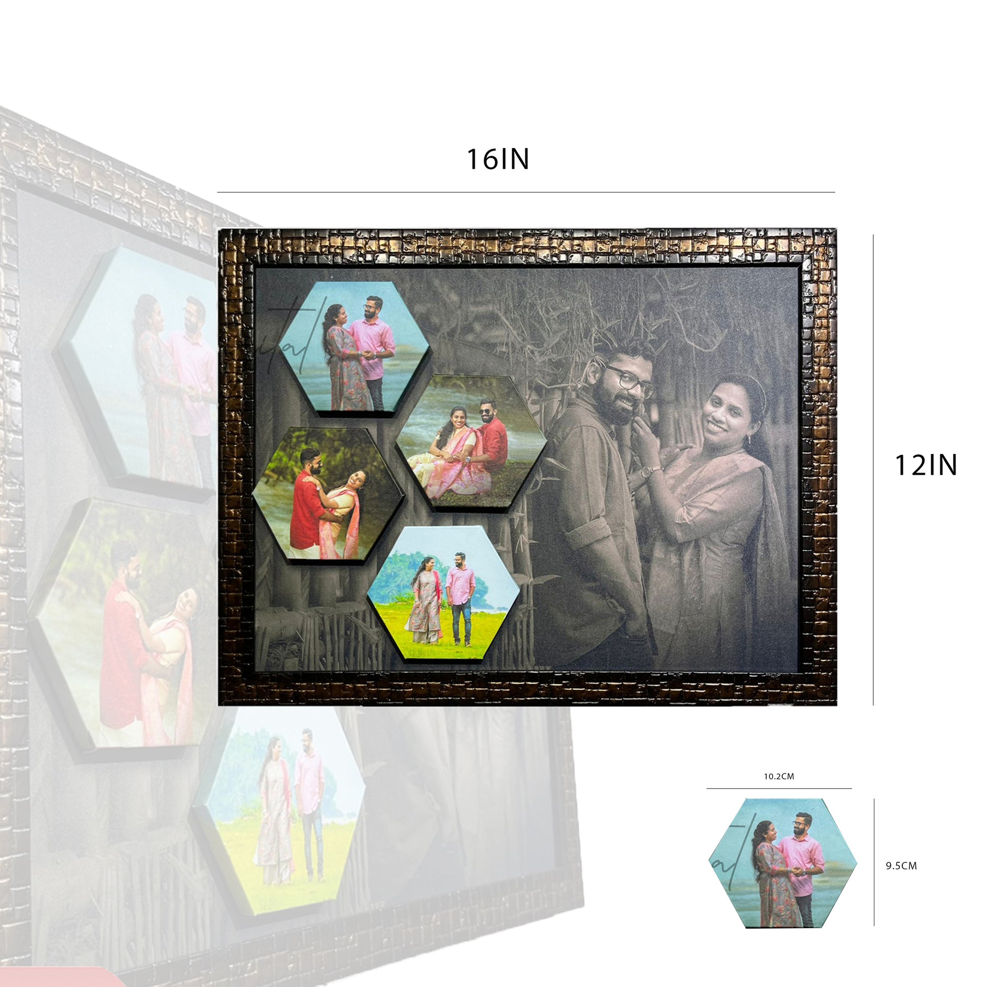 Display your favorite memories in style with this striking Hexagon Embossed Photo Frame. Featuring four dimensional hexagon blocks with embossed detailing, this frame combines modern geometry with timeless elegance. The contrasting black and white background creates visual depth, while the flexible design lets you choose between classic monochrome or vibrant color options to match your décor. Perfect for personalizing with your own photo, this frame transforms any wall into a gallery-worthy focal point.